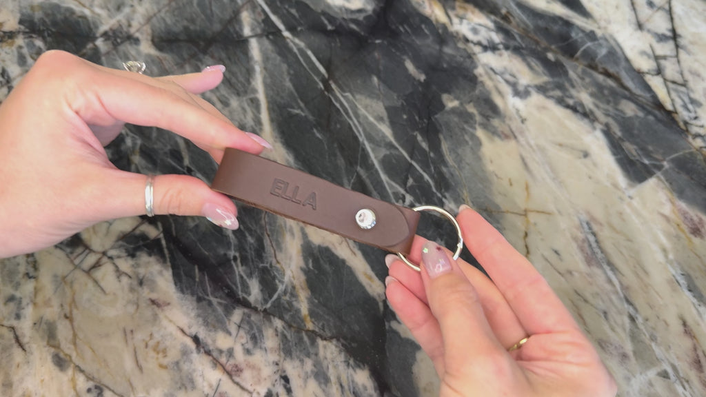 Meet your keys' new best friend! Our full grain USA Leather loop keychain is handcrafted from sustainable leather remnants, so every piece is truly unique. Choose from diverse leather and hardware color options to personalize your style. Add foil personalization for an extra pop. Built tough with a fixed rivet (no accidental unsnaps here!) This durable leather keychain is ready for anything. This is the perfect personalized leather gift to make someone's day (or, let’s be honest, treat yourself!). A custom leather keychain that’s both stylish and eco-friendly. Dimensions: 4.5" L x 0.75" W Get Creative! What will your sustainable leather keychain say? Perfect for initials, a meaningful name, a special date, or a symbol that tells your story (e.g., J.R., LUKE, 10.25.25, M&S ♡). Your Stamping Toolkit: Letters: A-Z (Heads up: It's CAPS ONLY for a bold, classic look!) Numbers: 0-9 Sweet Symbols: Period (.), Ampersand (&), Comma (,), Heart (♡) Short & Sweet: Please keep your masterpiece to a maximum of 10 characters. Type it Out: Enter your desired personalization exactly as you'd like it to appear. A quick double-check for typos is always a bright idea! We can't wait to handcraft your one-of-a-kind Northwind piece! Custom, Corporate Gift, and Wholesale Orders Interested in ordering 10 or more items? Reach out for bulk pricing! Want to add a logo, brand, or image to this product? Contact us for details. Searching for the perfect corporate gift? Get in touch to learn more. Need custom-made items? Please send us a photo, quantity, and any relevant details for a personalized quote!